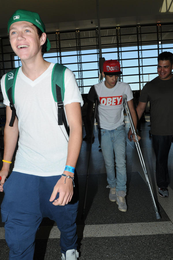 : O Zayn está de moletas, magoou-se no tornozelo, mas não é nada de grave.